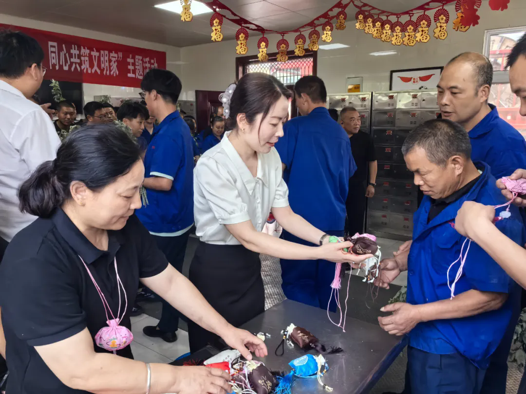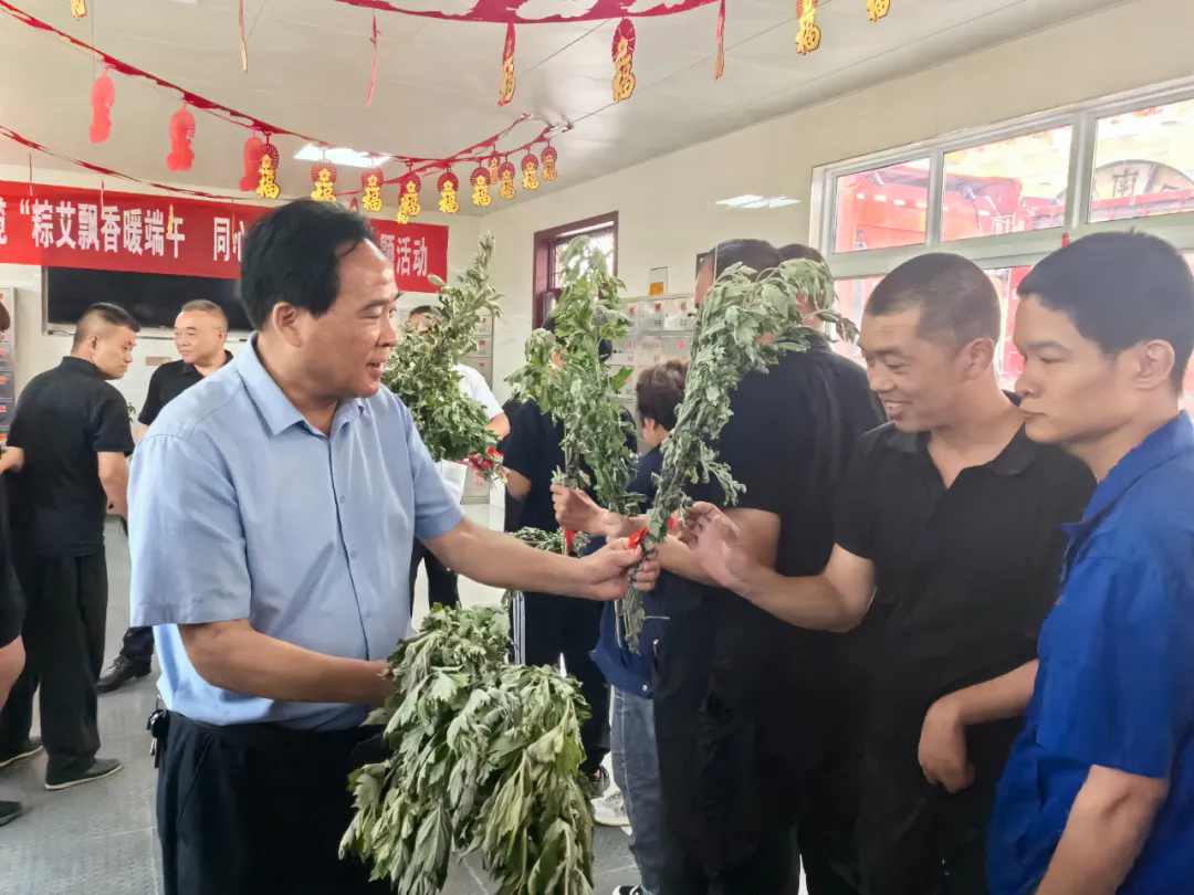 隨后,董事長李全嶺和黨支部書記施瑩瑩將象征著驅(qū)邪避疫、祈福安康的艾草束和五彩香囊,送給參與活動的每名員工。一個(gè)個(gè)精美的香包,一捆捆鮮綠的艾草表達(dá)了公司對員工及家人的關(guān)愛,也送去了對他們的節(jié)日祝福。