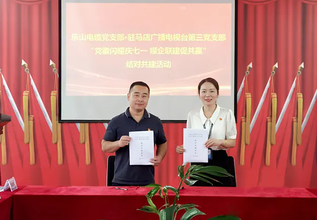 為創(chuàng)新黨建工作模式,促進(jìn)黨建與業(yè)務(wù)深度融合,2025年6月25日,駐馬店廣播電視臺(tái)第三黨支部黨員代表走進(jìn)河南樂(lè)山電纜有限公司,與公司黨支部攜手開(kāi)展了“黨徽閃耀慶七一 媒企聯(lián)建促共贏”結(jié)對(duì)共建活動(dòng),雙方黨員齊聚一堂,共話黨建發(fā)展,共謀合作新篇。
