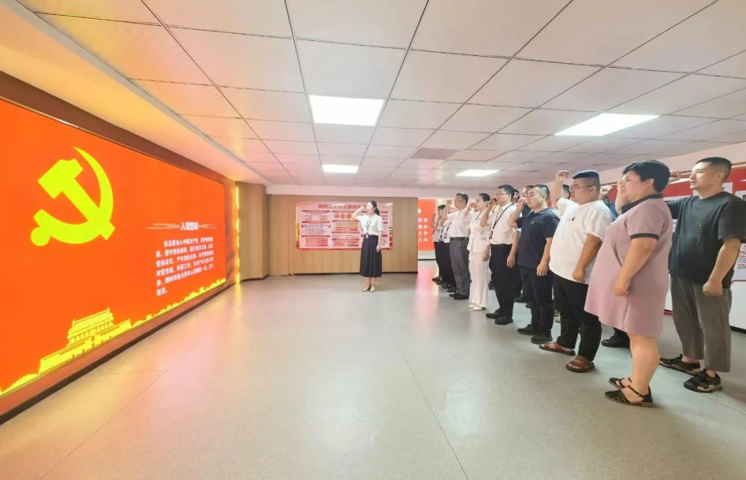 在智慧黨建展廳,全體黨員面向鮮紅黨旗,右手握拳,重溫入黨誓詞。鏗鏘有力的誓言,不僅堅(jiān)定了黨員們的理想信念、強(qiáng)化了黨員意識(shí),更激勵(lì)著大家以昂揚(yáng)姿態(tài)投身工作實(shí)踐。